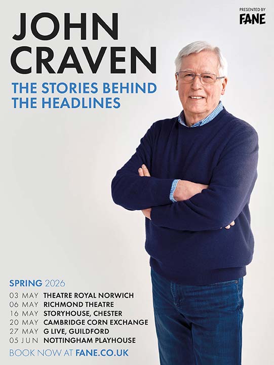 John has just announced a theatre tour for Spring 2026 - An Evening with John Craven: The Stories Behind the Headlines - celebrating and reflecting on over fifty years at the forefront of British broadcasting.